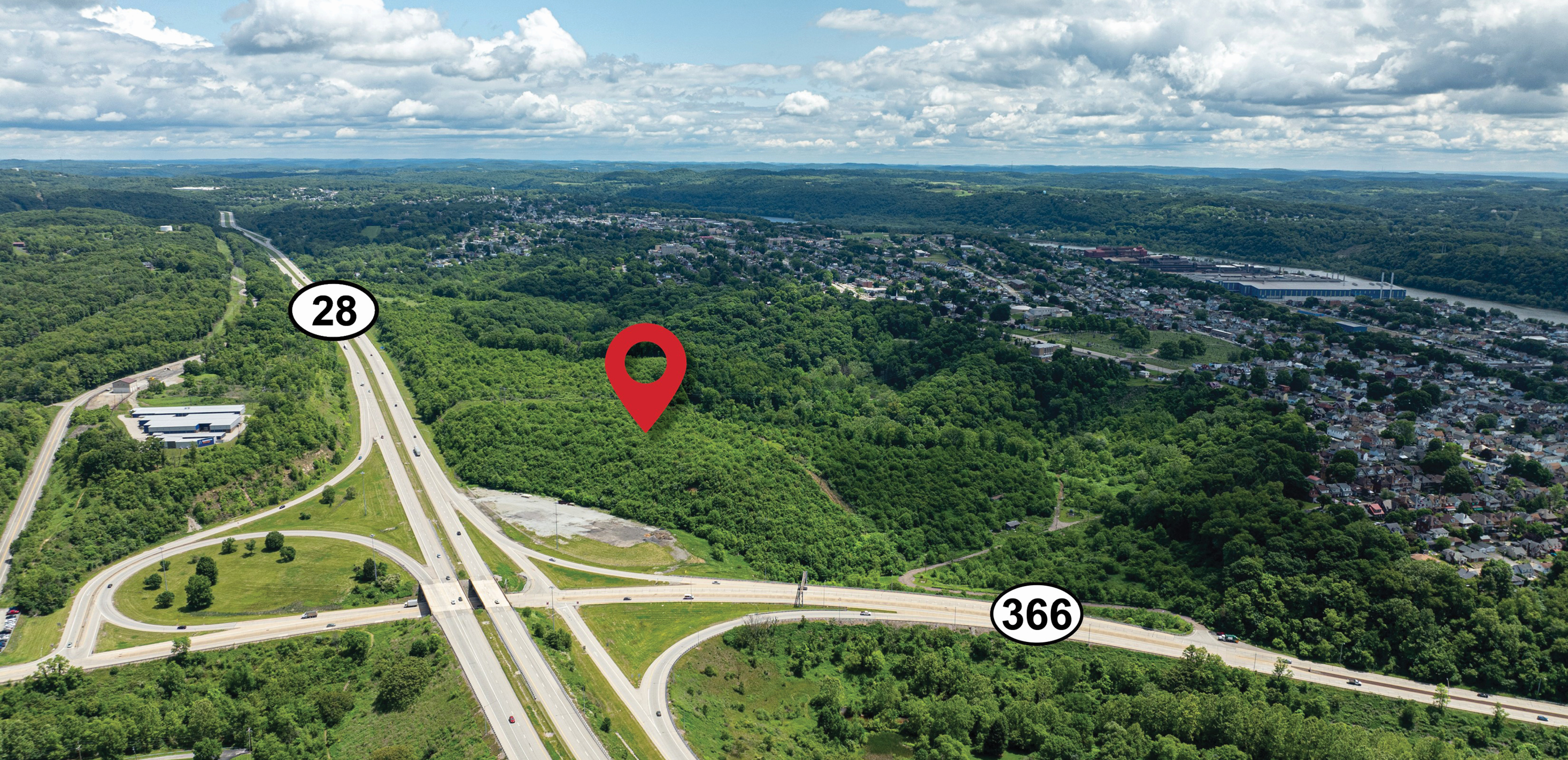 +/- 150-acre land site available with permitting and entitlements in-place in Harrison Township, Allegheny County, Pennsylvania. The site is strategically situated above the expressway near the Tarentum interchange of Route 28 with frontage and high visibility on Route 28 and Route 366.