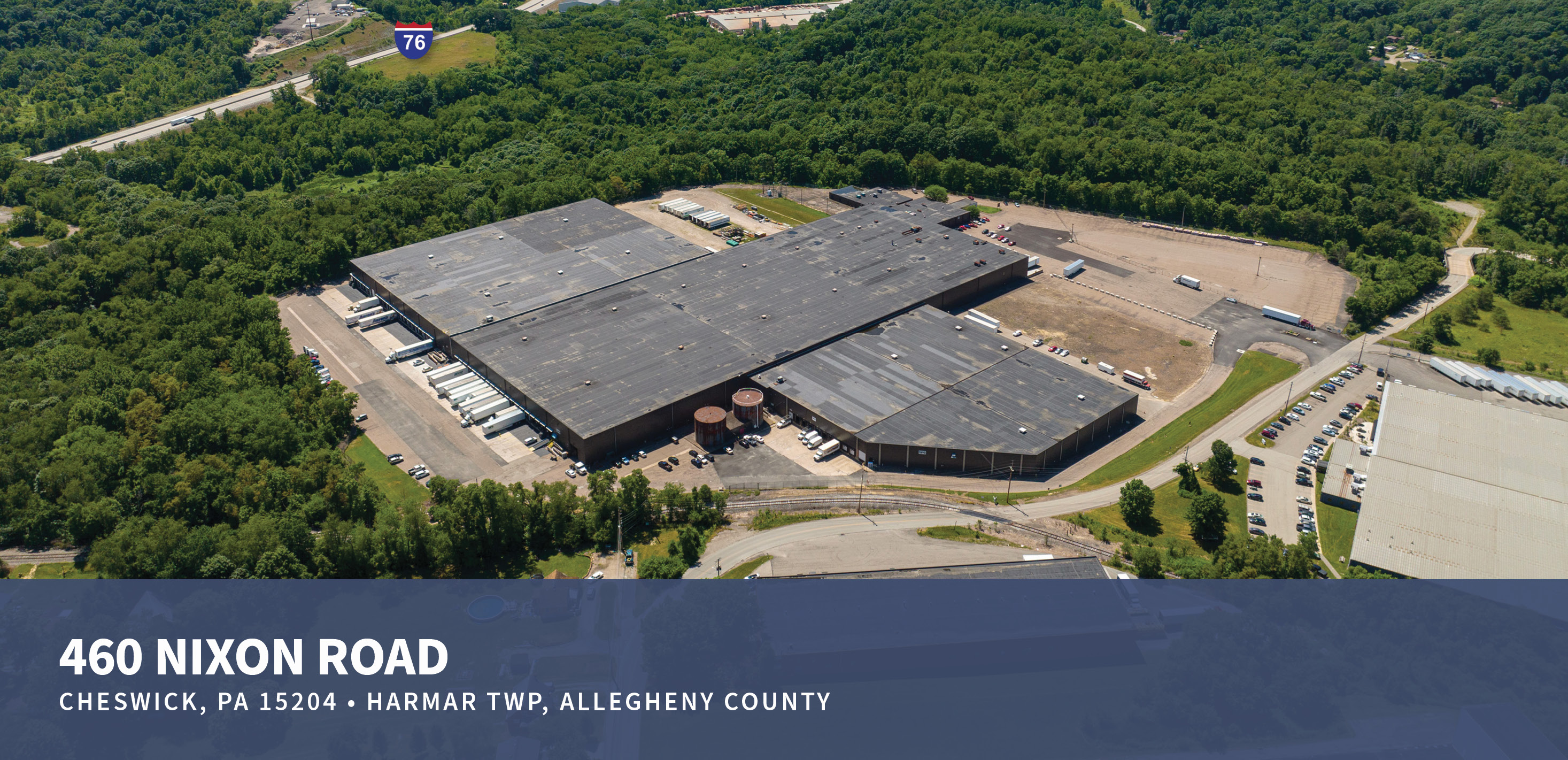 460 Nixon Road is a 515,411 SF multi-tenant industrial warehouse/distribution facility located in the Route 28 corridor in Harmar Twp, PA. The building sits on 43 acres and features 24' - 30' clear height, 63 loading docks, and has plentiful outside storage around the building.