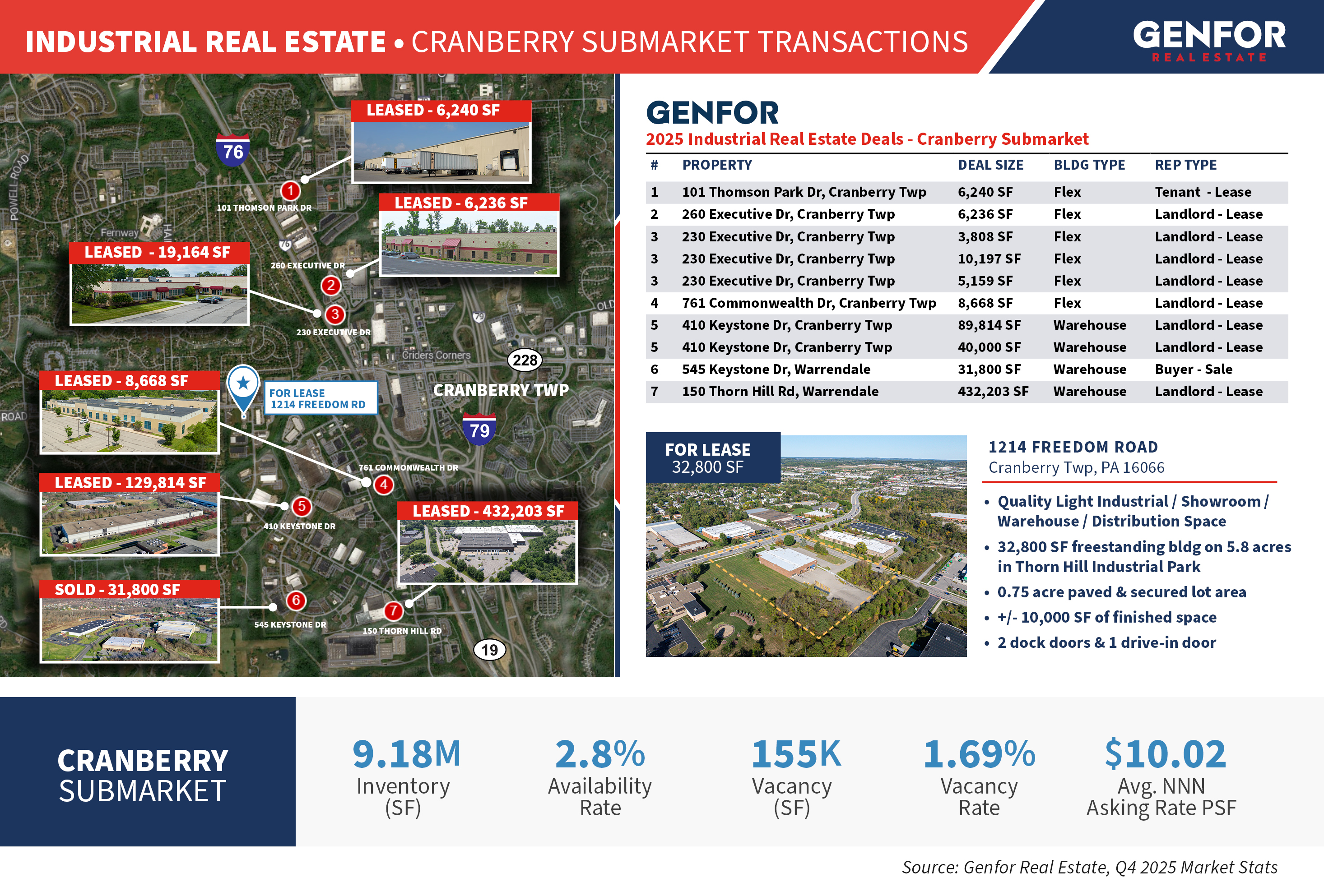 Genfor Real Estate's 2025 Industrial Real Estate Transactions - Cranberry Submarket: